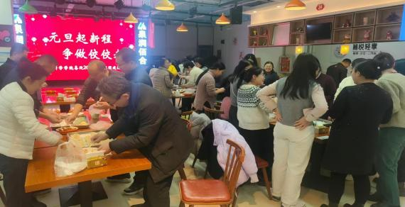 活动现场,教职工们纷纷挽起袖子,分工协作、默契十足,欢声笑语此起彼伏,交织成了一幅温馨和谐的美好画面。窗外寒意正浓,屋内暖意澎湃,随着一盘盘饺子下锅,热气腾腾地端上餐桌,整个现场瞬间被幸福的味道填满。教职工们围坐一起,品尝着香气四溢、汤汁鲜美的饺子,分享着趣事,场面温馨祥和,满足与喜悦溢于言表。