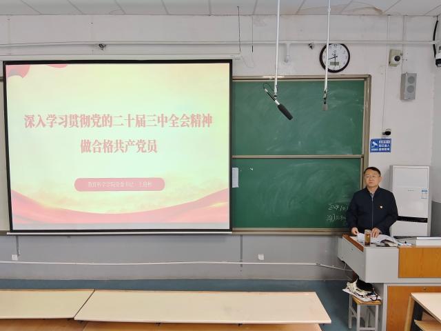 课上,王迎秋书记分别从党的二十届三中全会概况、教育科技人才一体化改革的部署要求、深化教育综合改革的重要举措三个方面对学习贯彻党的二十届三中全会精神作了详细地解读,为同学们深刻理解和把握党的二十届三中全会精神提供了有力的指导。 在谈到如何做一名合格的共产党员时,王迎秋书记从理想信念、业务学习、生活作风、组织培养四个方面进行了阐述,他鼓励入党积极分子要坚定理想信念,勤奋学习专业知识,践行社会主义核心价值观,积极向党组织靠拢。同学们也纷纷表示,在今后的学习和工作中,不断提高自身综合素质和能力水平,争取早日成为一名合格的共产党员。