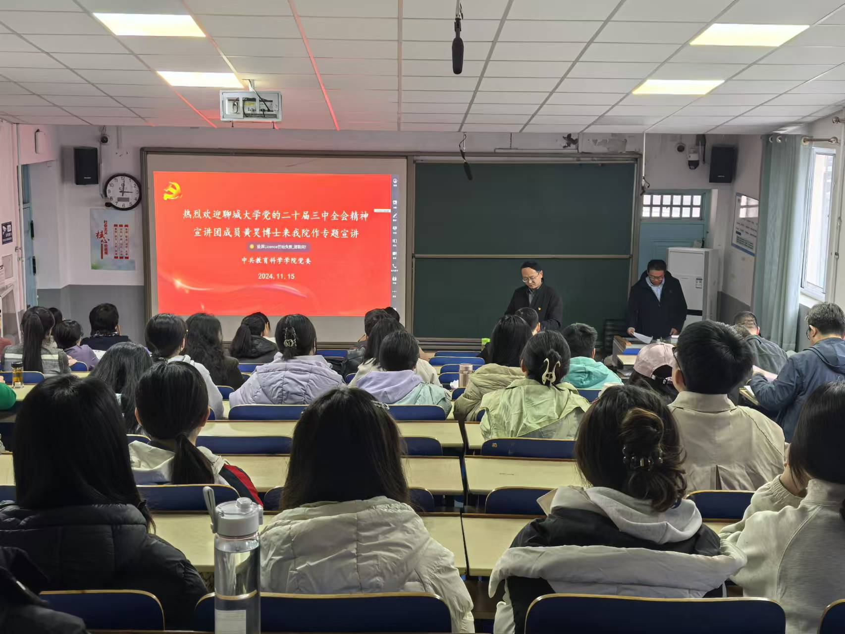 为深入学习贯彻党的二十届三中全会精神,11月15日,公司党委在4#A124举办党的二十届三中全会精神宣讲会,beat365亚洲体育官方网站全体教师及部分员工党员参加此次活动,会议由公司党委书记王迎秋主持。