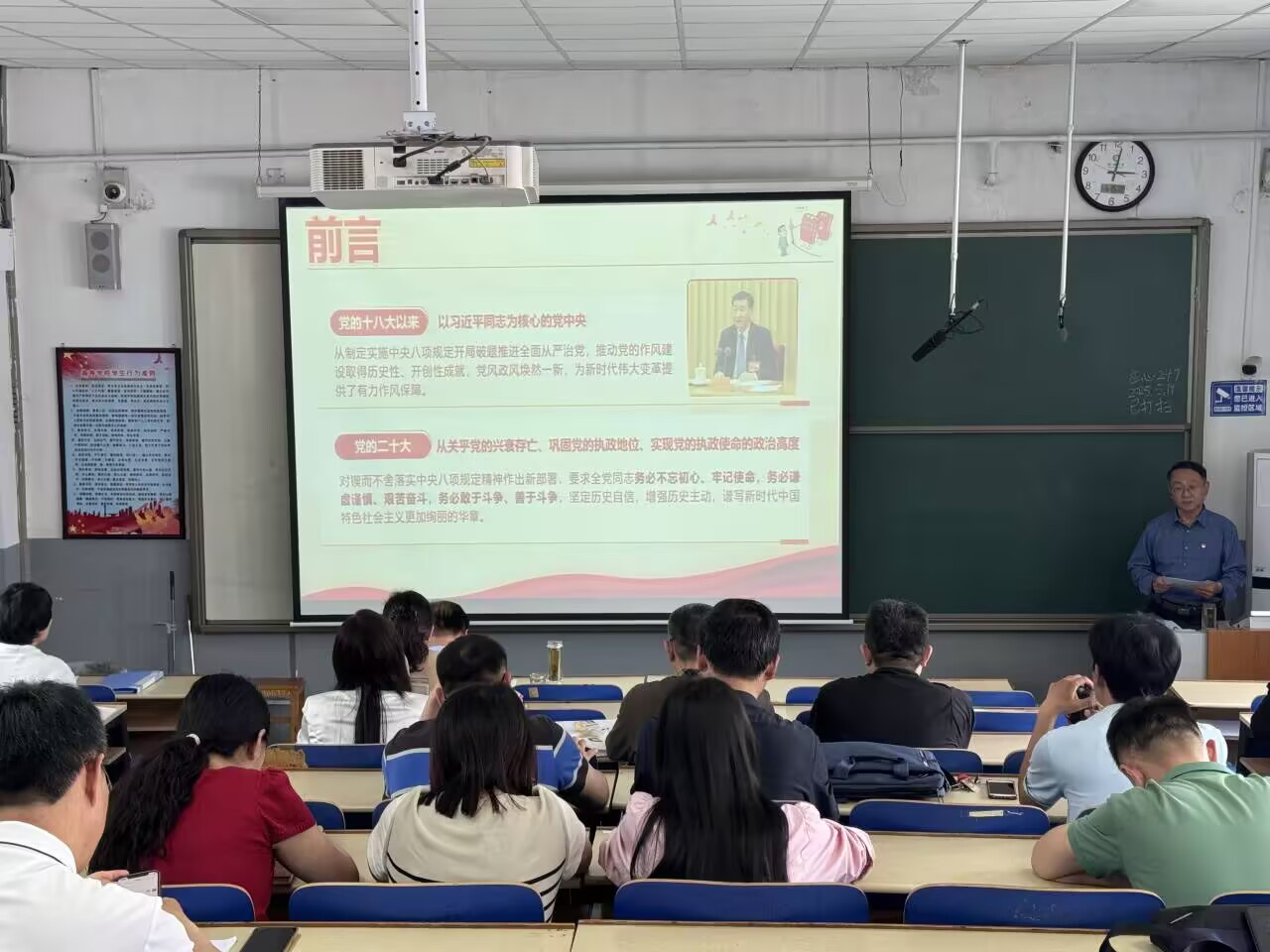为推动深入贯彻中央八项规定精神学习教育走深走实,5月15日,公司党委书记王迎秋以《严守规定 学以致用 深入贯彻中央八项规定精神》为主题,为公司党员干部讲授专题党课。公司全体教工党员和部分员工党员听取了党课。