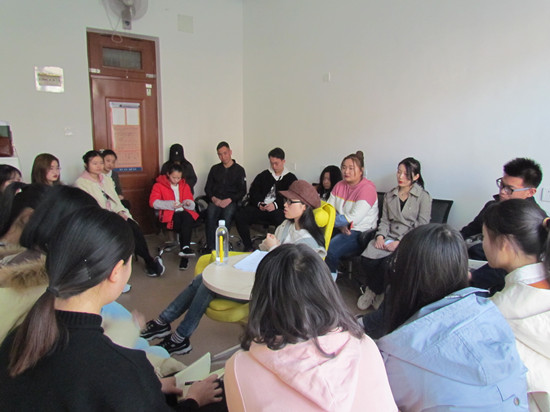 伴随着热烈的掌声,周旋同学开始了自己的演讲。开始大家都沉默不语,然而机智活泼的她用自己诙谐的语言引得大家开怀大笑,交流氛围越发热闹,她谈话的重点分为三个方面。首先周旋同学对大一的学弟学妹们讲了大学四年所要经历的事情,让同学们明确大学应该完成的任务,大一要抓好专业课,只有掌握了一定的专业基础才能去读懂相关课外书,到了大三的实习一定要收集好第一手资料,她说大三一定要读自己的书,这样到了大四准备考研的同学才不会自乱阵脚。其次,她告诫同学们一定要培养自己的志气,她以自己的亲身经历为例告诉大家一定不要服输,同学们也听得热血沸腾。最后周旋同学为大家推荐了许多宝贵暑书籍,耐心为学弟学妹们答疑解惑,热切希望这些书籍对学弟学妹以后的学习有所帮助。周旋同学的用心准备,学弟学妹妹们认真的笔记,让此次的交流会圆满结束,大家都收益匪浅。