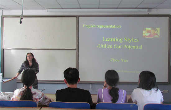 老师围绕学习风格的定义、理解、有关学习风格所提出的相关建议三个方面对学习风格进行了相关解读,帮助同学们了解学习风格的不同类型和特点、学习风格理论在教育实践中的应用等相关知识。同学们认识到因地域文化和教育制度的不同,各个国家的学习风格会大相径庭。即使是在相同的地域和教育制度的环境下,学习风格也会因人而异。她将自己身边不同的人的学习风格分享给在场的同学,通过比较,同学们对学习风格的类型有了更加清晰的认识。在讲解过程中,周老师时不时地与同学们进行现场互动,比如她提出怎样用六根火柴摆出四个三角形的问题,在场同学都积极回答,现场气氛十分活跃。待老师讲解完毕,同学们纷纷说出自己的心得体会,并向老师咨询相关问题,周老师都耐心地做出解答。此次讲坛在同学们的热烈掌声中落下帷幕。