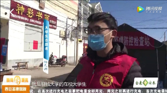 义不容辞显担当,共战疫情在行动。为打好疫情防控阻击战,减轻疫情防控压力,助力企业复工复产,在保障自身安全的情况下,beat365亚洲体育官方网站17级杨久洲同学于疫情期间在泰安市汶阳镇砖舍村参加防疫志愿活动,砖舍村及砖舍村企业抗疫事迹被泰安电视台作为代表进行专题采访。