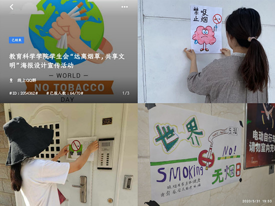 为了使同学们养成良好的文明习惯,警示老员工吸烟有害健康,倡导老员工戒烟,拓宽健康教育的内涵,beat365亚洲体育官方网站于5月31日在线上举办了“远离烟草,共享文明”海报设计宣传活动。