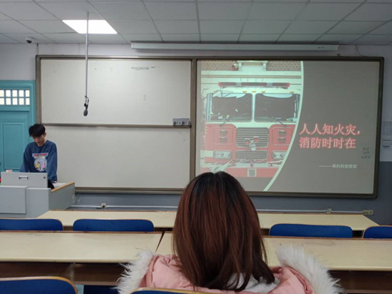 本次活动共分为知识讲解和案例警示两个部分。负责人先以PPT的方式讲解了关于消防的具体内容,包括防火常识和灭火器的使用方法等。他不仅从理论上向大家讲授相关知识,而且列举了生活中的真实案例,教训深刻,发人深省。其中,以漫画的方式带领同学们一起学习防火常识,生动形象,同学们学地认真,收获很大。随后观看消防安全视频,视频记录了消防出警的故事,消防训练的刻苦,消防员们的日常以及消防员们的真实感受。一个个真实的故事,触动人心,感染了在场的所有同学。认识到,消防不只是灭火,还有社会救助和抢险救援,他们每一次为我们的服务,背后都是极为辛苦的付出。