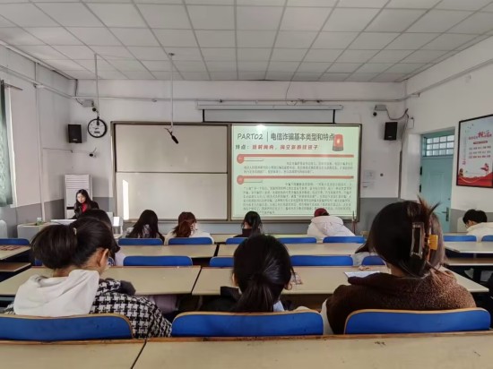 会上,主讲人周锦文通过一个视频让大家对电信诈骗的定义和范围有了基本了解,同时结合ppt展示从电信诈骗的类型和特点、电信诈骗的危害以及如何预防电信诈骗等方面开展讲解。首先,她向大家介绍了电信诈骗用时短、造成损失大、手段翻新快的特点;然后通过互动,让参会同学分享了自己经历过或听说过的电信诈骗事例,通过真实案例让大家深入了解电信诈骗所造成的危害;最后,她详细地为同学们介绍了预防电信诈骗的具体措施,提醒同学们要做到“六个一律,八个凡是”,不给诈骗分子可乘之机。