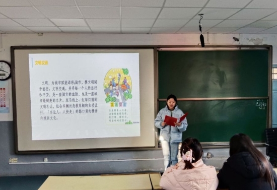 在活动中,武慧玟、曹熙雯围绕“文明交通”的主题展开演讲,她们向同学们讲述文明交通规则和意义,引导同学们自觉遵守交通法规;尹净初采用PPT与演讲相结合的形式,从“交通安全的重要性”“交通安全相关的法律法规”“典型案例”“交通安全青年行”四个方面展开讲解,她倡导同学们认真学习交通安全法律法规,遵守交通规则,在行走时要集中注意力,随时关注道路情况;骑行时要自觉佩戴头盔。经综合评定,尹净初获一等奖,曹熙雯、武慧玟(组队)和张文雅获二等奖,张彤彤、杜昕冉获三等奖。
