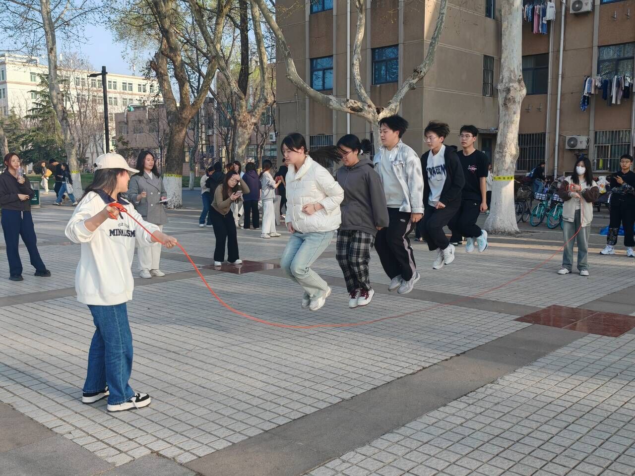 为进一步丰富同学们的课余生活,鼓励同学们走出宿舍,提高身体素质,3月31日,beat365亚洲体育官方网站在五四广场举办“跃动青春 绳彩飞扬”跳长绳比赛,团委书记王瑾、辅导员莫合甫力江参加活动。