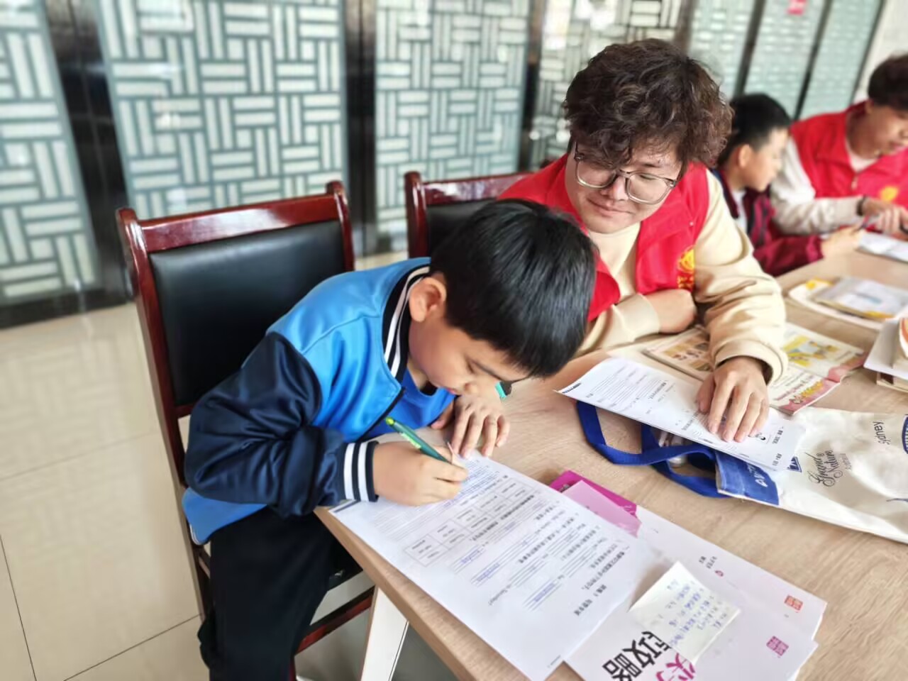 活动中,志愿者们根据孩子们英语基础的不同,巧妙实施分层教学工作。他们运用故事串联、口诀记忆等趣味方式,帮助孩子们轻松理解并掌握知识。在课间休息阶段,志愿者插入了英语情景短剧表演环节,孩子们通过生动的表演体会到学习英语的乐趣,志愿者在一旁细心指导他们的发音和动作,帮助孩子们在趣味表达中提升英语口语能力。
