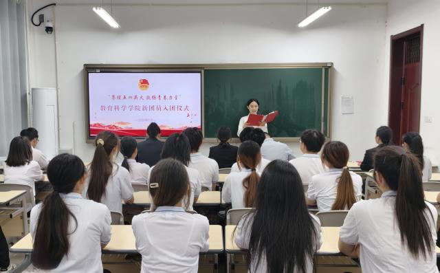 入团仪式在嘹亮的国歌声中拉开帷幕。主持人李红杰宣读新团员名单,参会老师与优秀党员代表逐一为新团员佩戴团徽徽章,并颁发团员证。在优秀团员代表王诗晴的领誓下,团员们面向团旗,举起右手,庄严宣誓。新团员代表毕家晨表示,将牢记入团誓言,以实际行动践行团员的责任与使命,积极参与团组织活动,充分发挥模范带头作用,与全体新团员携手并肩,努力学习、勇于实践,争做新时代的有为青年。优秀团员代表王诗晴结合自身成长经历,鼓励同学们始终保持积极进取的精神状态,在学习与实践中不断提升能力与素质,用奋斗书写青春华章。王瑾老师对新团员的加入表示热烈的祝贺,她希望同学们坚定理想信念、筑牢精神根基,自觉将入团时的铮铮誓言化作行动指南,在躬身实践中锤炼过硬本领、积蓄奋进力量,成长为堪当民族复兴重任的栋梁之材。入团仪式在合唱中国共产主义青年团团歌中圆满结束。