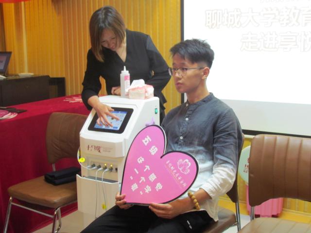 待同学们到达目的地,主持人带领大家参观了会所并简单地介绍后,为同学们播放了一段胎儿在母亲肚里发育的视频,虽然整段视频只有短短的12分钟,但也给大家带来了极大的震撼。从小小的细胞开始,直成长为一个发育完全的婴儿,让人对生命敬畏的同时也感受到做母亲的不易。为了让大家体验母亲分娩时的辛苦,感受母亲为我们的付出,工作人员为大家准备了两台分娩体验机,并详细介绍了使用机器时的注意事项。最开始只有两个同学大着胆子坐上了体验椅,随着档位的渐渐升高,他们脸上的表情由轻松逐渐转为凝重,又变成痛苦,虽然已经快要忍受到极限却也没有和工作人员喊停,有一个同学甚至已经满脸是汗,牙龈紧锁说不出话。两人最后都坚持到了十级,台下的同学们都为他们的勇敢和坚毅自发地鼓起掌。当主持人将话筒替到刚体验完的一个同学嘴边,让他表达一下感受和想法时,他表示十分心疼自己的母亲,没有想到为他吃了这么多的苦,自己已经成长成大人了,能够为她分担得更多,不会再让她为自己操心了。听这由衷的话语大家再一次为他送上掌声。