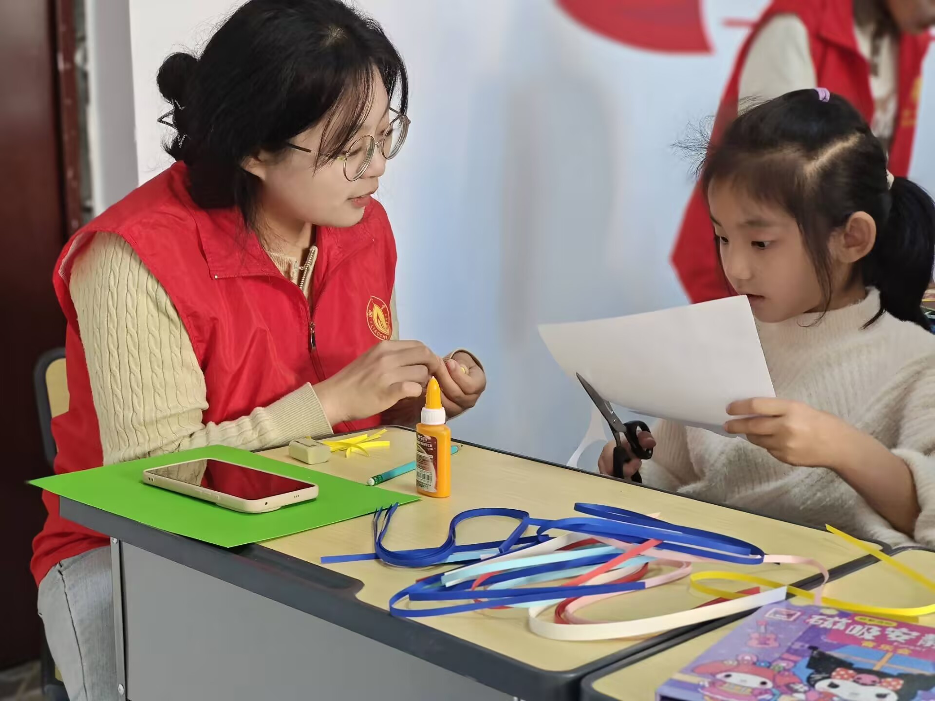 为丰富社区儿童的文化生活,锻炼他们的动手能力与创造能力,11月2日,beat365亚洲体育官方网站组织服务队赴大学城东苑小区开展“DIY彩虹云朵挂饰”手工小课堂志愿服务活动。