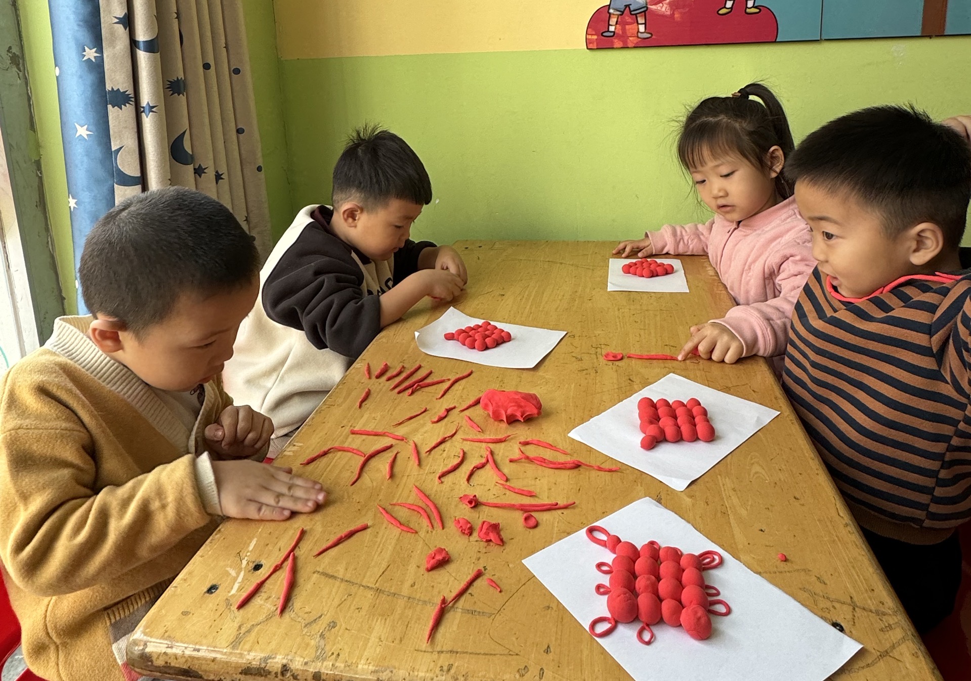 活动筹备阶段,服务队成员为幼儿园小朋友准备了制作材料与趣味故事。活动开始,服务队成员通过生动有趣的故事与精美的图片,向孩子们介绍了中国结的起源、发展历程以及所承载的文化意义。孩子们被形态各异的中国结深深吸引,一双双眼睛里充满了好奇与期待。在轻松愉悦的氛围中,孩子们踏上了探索中国传统文化的旅程,他们在服务队成员的组织下分组围坐,开始制作中国结。在服务队成员一对一的耐心指导和鼓励下,孩子们逐渐掌握了制作中国结的基本技巧,他们的小手灵巧地穿梭在红绳之间,一个个精美的中国结逐渐成形。活动最后,成员们鼓励孩子们上台展示自己的作品并为孩子们拍照留念,大家都沉浸在欢乐轻松的氛围之中。