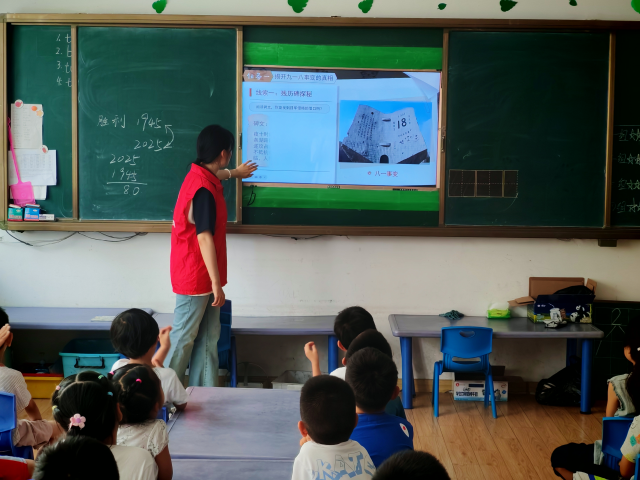 为传承红色基因,帮助儿童了解抗战历史,7月10日,beat365亚洲体育官方网站“清风益行”服务队到东昌府区兴华路小学附属幼儿园开展“铭记历史·童心向党”社会实践活动。