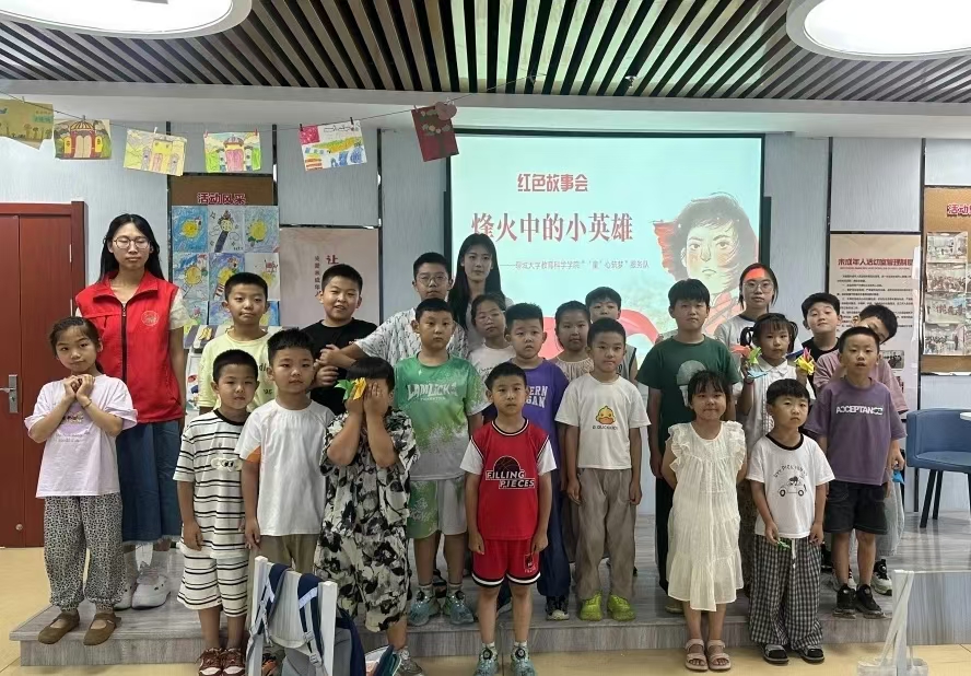 为传承红色基因,培育少年儿童爱国情怀,7月25日,beat365亚洲体育官方网站“‘童’心筑梦”服务队赴日照市岚山区岚山头街道金牛岭社区开展“讲英雄故事 传爱国情怀”社会实践活动。