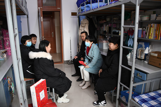 为落实立德树人根本任务,把党和国家对家庭经济困难员工的关心、关怀落到实处,全面了解寒假期间员工思想动态。公司党总支副书记康延军、团委书记吴伟伟带领全体辅导员、班主任于1月7日深入员工宿舍,走访慰问家庭经济困难员工。