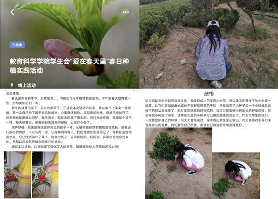 在活动后,有的同学呼吁大家要尊重劳动人民的劳动成果,不要浪费粮食;有的同学希望大家能尽己所能保护环境;还有的同学为大家分享了照顾植物的方法技巧。