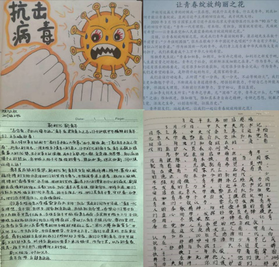 本次活动不限形式,参与人员可随意选取感悟征文、主题绘画、录制影像等形式,自由发挥。有同学选择写作的方式抒发自己的感悟和思考,作为新时代新青年,同学们有心底汹涌不止的热血,写出冲破天际、不可阻挡、不惧山海之远的勇气;有同学充分利用自己的爱好和优势,结合抗疫相关内容进行绘画创作,传达出当代青年在祖国危难之时,无畏无惧、挺身而出的豪迈之情;还有同学录制诗歌朗诵、歌曲、舞蹈视频等多种才艺,展现了无数青年人为天地立心,为生民立命,为往圣继绝学,为万世开太平的坚定决心。不同的创作方式异彩纷呈,同时也鞭策着广大青年应不惧风雨、勇挑重担。青春,定是一段不甘于平凡,拼搏向上的岁月,新青年终将在新时代的背景下乘风破浪,浩荡千里。