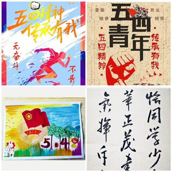 活动前期由负责人制定好比赛形式及内容,并将活动要求发送到班级群中,经过班长和团支书的积极宣传,吸引了众多同学参加活动。活动参加形式多样,同学们选取自己擅长的方式表现青年人传承五四精神的决心。书法组的同学们写的毛笔字观其力而不失,身姿展而不夸,笔迹力透纸背。相宇同学写的“恰同学少年,书生意气,挥斥方遒。”充分表现了青年人以国家发展为己任的壮志豪情。绘画组的同学们也是用心呈现了一幅幅精美的画作,沈欣秋同学画出青年、和平鸽、书籍等,用简单的图画,表现青年人对世界和平、国家繁荣最美好的期盼。海报组的同学们充分利用了高科技,设计出一幅幅意义丰富的海报,刘锐同学绘制出青年人朝气蓬勃的状态,并借此表现“五四精神传薪火,激扬青春献祖国”的活动主题。