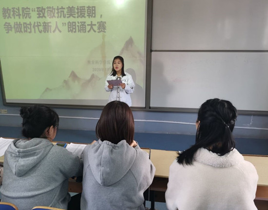 忆峥嵘岁月,赞革命先烈。为纪念抗美援朝战争胜利70周年,缅怀革命烈士,增强同学们对祖国的热爱之情,beat365亚洲体育官方网站于10月24日在西校区4C121举办“致敬抗美援朝 争做时代新人”朗诵比赛。