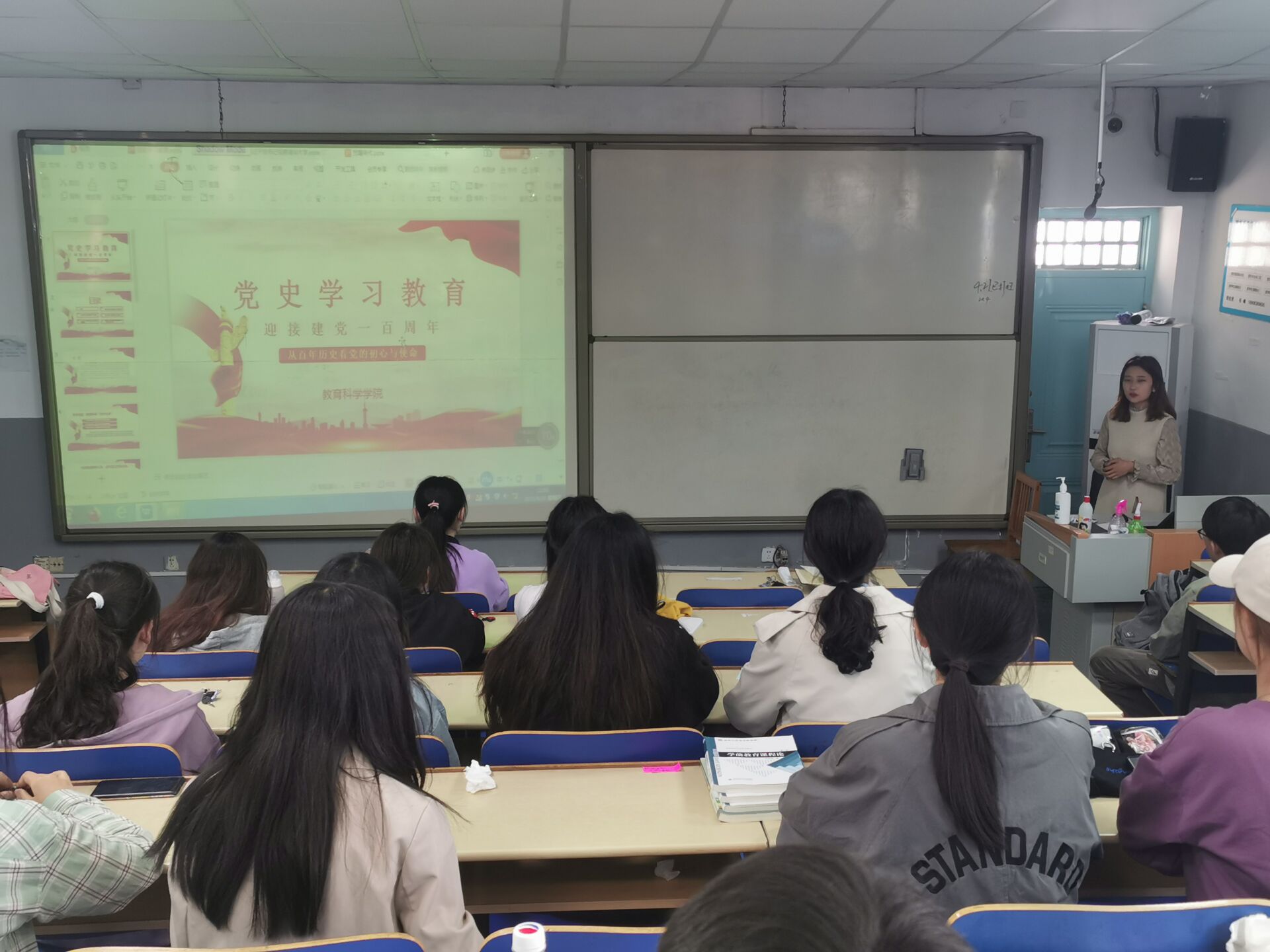 侯佳晨首先组织同学们学习党史,她认为,党史是青年教育的“必修课”,强调强化党史教育是增强党性修养、筑牢宗旨意识的有效途径,从“为什么学”、“怎样学”两个方面展开,以重视思想,丰富内容,充实力量,创新形式四个方面为切入点落实党史教育。随后,她通过播放视频学习习近平总书记视察清华大学重要讲话精神,结合专业特点鼓励同学们全面发展,培养创新意识,致力于解决实际问题,成长为教育事业的中流砥柱。同时,侯佳晨借助建党百年优秀影片《觉醒时代》带领同学们共同感悟从新文化运动到中国共产党建立这段波澜壮阔的历史画卷,讲述了觉醒年代社会风情和百态人生,引导员工干部们树立爱国主义精神,激励同学们大力弘扬和培育民族精神,以振兴中华为己任,她表示,员工干部要将理论知识付诸实践检验,做好服务工作,恪守服务宗旨,充分发挥部门功能。