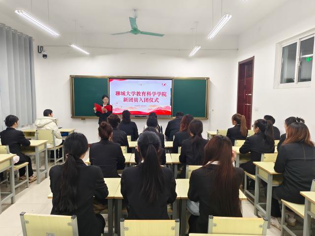 仪式在激昂的国歌声中拉开帷幕。主持人马嘉鑫宣读新团员名单,参会老师与优秀党员代表为新团员佩戴团徽徽章,并颁发团员证。在优秀团员代表荆琦的领誓下,团员们面向团旗,举起右手,庄严宣誓。新发展团员代表杜昕冉表示,将以更高的标准严格要求自己,学习上勤奋刻苦、生活中积极向上,以团员身份为荣,按团员标准自律,追求卓越,为团组织增光添彩。优秀团员代表堵钟心在发言中呼吁新团员们要永葆爱党爱国的赤诚情怀以及向上向善的优秀品质,不断学习科学文化知识,将理论运用到实际生活当中,努力在新时代的浪潮中奋勇拼搏,用青春的激情与汗水书写无愧于祖国和人民的壮丽篇章。团委书记王瑾对新团员们的加入表示热烈地祝贺,她希望同学们时刻牢记自己是一名光荣的共青团员,增强团员意识,积极地向党组织靠拢,勤奋学习、勇于创新,在实现中华民族伟大复兴的征程中贡献自己的青春力量。入团仪式在合唱中国共产主义青年团团歌中圆满结束。
