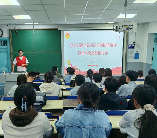活动中,宣讲团成员赵冰杰从学习习近平总书记五四重要回信及青年寄语、回信精神解读、新时代青年担当等方面开展讲解,结合西部计划志愿者投身边疆、助力乡村振兴的鲜活事例,引导同学们将奋斗精神融入日常学习、工作与生活,切实肩负起时代赋予的职责使命。活动最后,赵冰杰与全体同学共同重温了习近平总书记对青年的殷切寄语:“广大青年要坚定不移听党话、跟党走,怀抱梦想又脚踏实地,敢想敢为又善作善成,立志做有理想、敢担当、能吃苦、肯奋斗的新时代好青年,让青春在全面建设社会主义现代化国家的火热实践中绽放绚丽之花。”这番话语激励同学们要树立远大理想,勇于担当作为,甘于吃苦奉献,努力成长为堪当民族复兴大任的时代新人。活动结束后,同学们纷纷表示,将以此次活动为新起点,把个人理想追求与国家和民族的事业紧密相连,为祖国建设添砖加瓦。