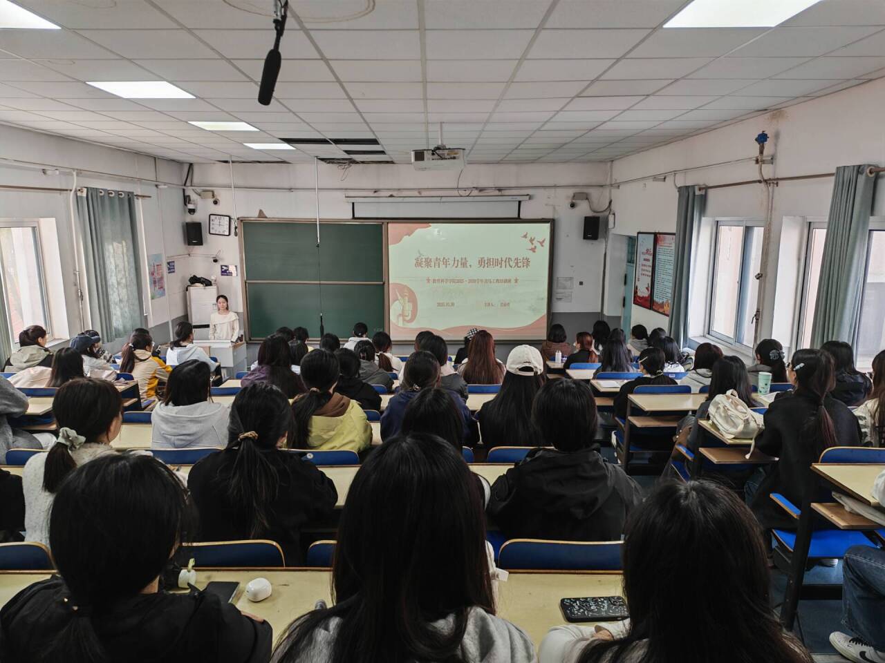 主题学习围绕“中国式现代化的核心内涵与时代要求”与“青马工程学员践行中国式现代化的实践路径”两个部分展开。主讲人系统阐述了中国式现代化的鲜明特征,以及实现中华民族伟大复兴的核心目标。她从读书学习、自律修身、直面挫折、投身实践四个方面梳理成长路径,号召同学们在理论学习中夯实基础,在品格锤炼中提升素养,在意志磨砺中增强韧性,在实践服务中增长才干,以实际行动践行青年担当,努力成为现代化建设的生力军。
