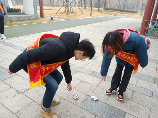 beat365亚洲体育官方网站女工部、器乐部成员在五四广场集合,一同出发前往东昌湖进行实践活动。尽管天气十分寒冷,也阻挡不了成员们参加实践活动的热情,迎着凛冽的寒风,所有成员一齐抵达东昌湖。东昌湖是聊城著名的旅游景点,但游玩之余,大家有意无意遗留下来的垃圾总在破坏这份美的体验。到达东昌湖之后,大家分成两个小组,分别从东昌湖的两个方向开始沿湖捡拾垃圾。大家热情高涨,认真地拾捡着绿化带里的各种小垃圾,对东昌湖畔的水果皮、烟头、纸屑、白色垃圾等一一进行清除,并将垃圾带到垃圾桶处集中处理。活动过程中每个人都表现出不怕苦不怕累的精神,仔细搜寻每个角落,清澈的湖水,红色的绶带,显得格外耀眼。环湖一圈之后,东昌湖的美丽风景在所有成员的努力下变得焕然一新。最后,所有成员回到出发地点,在美丽的东昌湖前拍下合照,为整个活动画上一个圆满的句号。