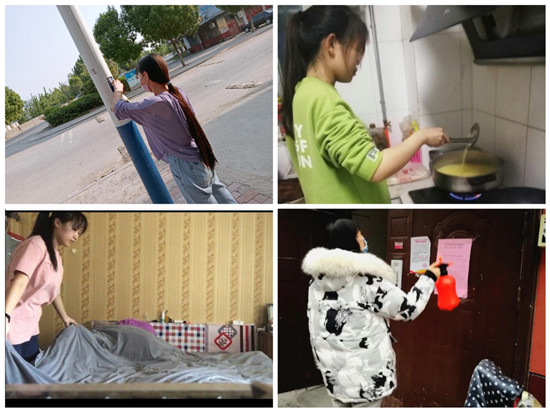 活动开始前,由活动负责人提前下发通知,保证所有人员通知到位,做好参加人数的名单统计。本次活动分为居家做家务和到街道社区进行义务劳动两种形式,任选其中一项参与,将活动过程用照片或视频记录下来,并以文字的形式体现自己的劳动感悟。黄志豪同学分享他为养老院奶奶安装电视信号接收器的事情,无比感慨地说:“每个人都会变老,有一天我们的子女也会离我们远去,我们也会变得孤苦无依,人生都有夕阳红,尊老爱幼树新风。”在特殊的疫情时期,时时刻刻都不能放松。栾雨虹同学戴着口罩,拿起酒精喷壶为小区楼道进行消毒,为抗击疫情贡献自己的一份力量;为小区去年栽的小树浇水,让它们吐露更多的新芽,迎接春天的到来。李春雨同学自觉承担起了家里力所能及的家务,为父母分担,发出呼吁:“趁着现在父母还在身边,趁着我们有闲暇时间,趁着还有机会陪伴父母,请不要吝啬,尽自己所能的多帮父母做些事情,不要让自己的人生只剩下后悔和遗憾。”在经过评委的统一投票后,优秀作品脱颖而出。