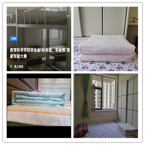 为了让同学们养成良好的卫生习惯,共同回忆宿舍的美好时光,beat365亚洲体育官方网站于5月26日在线上举办“同舍谊 军被情”居家军被大赛。