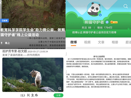 为了助力保护秦岭大熊猫,守护秦岭野生动物栖息地,同时让同学们了解更多关于野生动物保护方面的相关知识,beat365亚洲体育官方网站于5月3日到6月1日在线上举办“助力微公益 做熊猫守护者”公益活动。