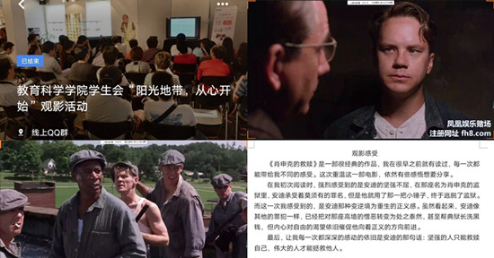 活动准备前期,活动负责人组织部门全体成员提前召开会议,商议活动的相关事项,确定活动时间,准备好电影资源《肖申克的救赎》。做好准备工作后,活动负责人联系各班班委,下发有关活动通知和注意事项,请报名成功的同学加入活动群聊并通知参加的同学必须通过在线视频全程观看。活动期间,活动负责人打开活动群聊,发起视频通话,确定多媒体设施无误后,主持人进行开场白,进而播放心理电影《肖申克的救赎》,参与的同学保持安静,认真观看电影。“记住,‘希望’是个好东西,也许是世间最美好的东西,好东西永远不会消逝。”文末这句话,字字深入同学们的心。活动结束后,参与的同学需要写下三百字左右的感悟和心得,以文件形式发到群聊中。活动负责人在活动结束后进行材料整理和活动总结。