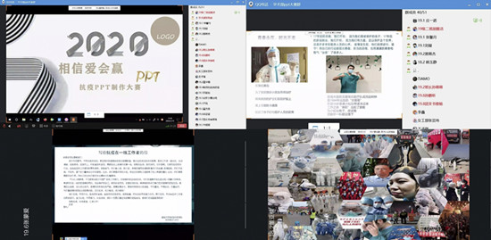在全国统一抗击疫情期间,所有同学都响应国家号召在家。此次活动在线上利用QQ软件直播进行,所有参赛者在家中做了充分的准备,在主持人的简短介绍后,大赛正式开始。有的同学讴歌了奋战在抗疫一线的防疫工作者,为他们送祝福、加油打气;有为大家科普关于新型冠状病毒的知识,彰显当代老员工的科学文化素养,教同学们如何避免感染病毒;有的分享了在新闻报道中看到的感人事迹,亦或是讲述疫情期间发生在身边的好人好事;也有人分享与家人之间发生的趣事,或在家中学习的新技能。所有参赛者将PPT讲解完毕后,由公司各个班级的班长和团支书进行线上投票,选出优秀的作品。