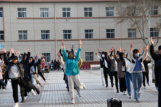 324日,beat365亚洲体育官方网站于西校区五四广场举行第九套广播体操训练活动,旨在丰富校园文化生活,提高员工的身体素质,展现同学们奋发上进的精神面貌。