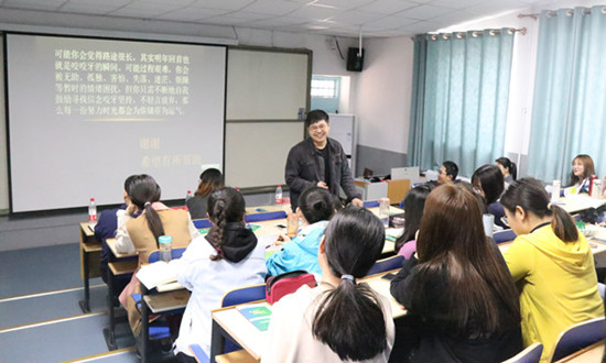 主持人首先对老师及分享考研经验的同学做了简短的介绍,交流会在热烈的掌声中拉开了帷幕。紧接着,被华南师范大学录取的刘佳佳分享自己考研的经验心得。在早期目标选择方面,她建议考虑地域、公司、个人兴趣等多方面因素,致力于提升个人眼界和素养;在考研复习规划方面,她通过分隔时间段的方式介绍了她在每个不同时间段里的复习顺序和方法,从收集资料到合理选择参考资料,从刷真题到做笔记,从大框到中框再到细化的复习顺序,详尽细致,为同学们准备考研复习提供了很大的帮助。刘佳佳指出,沉下心认真复习,少一些自我感动是关键。活动最后是你问我答环节,由王泽国、刘佳佳对同学们提出的问题进行回答,同时他们也反复强调考研最重要的是坚持,不要轻言放弃。最后,活动在热烈的掌声中圆满结束。