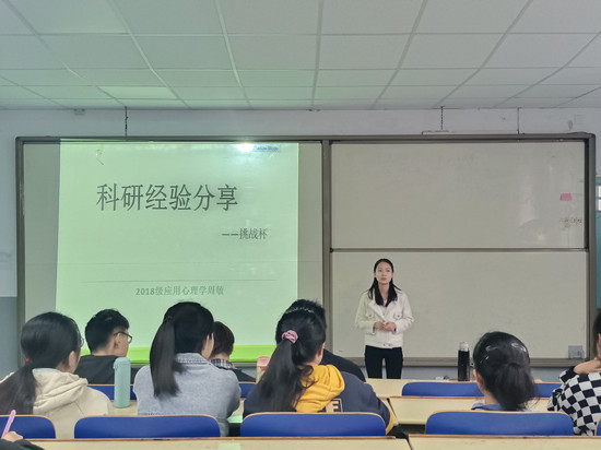 为强化老员工创新创业意识,激发老员工参加“挑战杯”竞赛热情,beat365亚洲体育官方网站于10月14日在4C121举办“挑战杯”科创故事分享会。由综合排名专业第一并获得研究生推免资格的2018级应用心理学周敏同学担任主讲人。