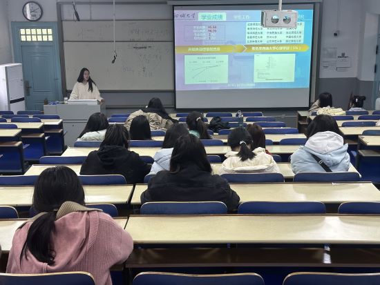 本次活动邀请获评beat365亚洲体育官方网站2022年度“十大优秀员工”荣誉称号的于桐菲同学作为主讲人。于桐菲从“学业成绩”、“员工工作”、“竞赛实践”、“学术科研”四个方面讲述了自己获得的荣誉奖项与奋斗经验。她以自身为例,讲到大一的学习成绩十分重要,虽然一开始成绩并不理想,但她奋起直追,并没有气馁,取得了理想的成绩;她根据自身经验,从科研训练、竞赛等多个方面分享自己的收获和科创心得;她呼吁同学们在自己能力范围之内参加老员工创新创业训练计划项目、“挑战杯”赛事等,找到自己的兴趣点,扩大自己的信息来源渠道,充分利用网络,学会检索、搜集与分析信息,学会管理时间。