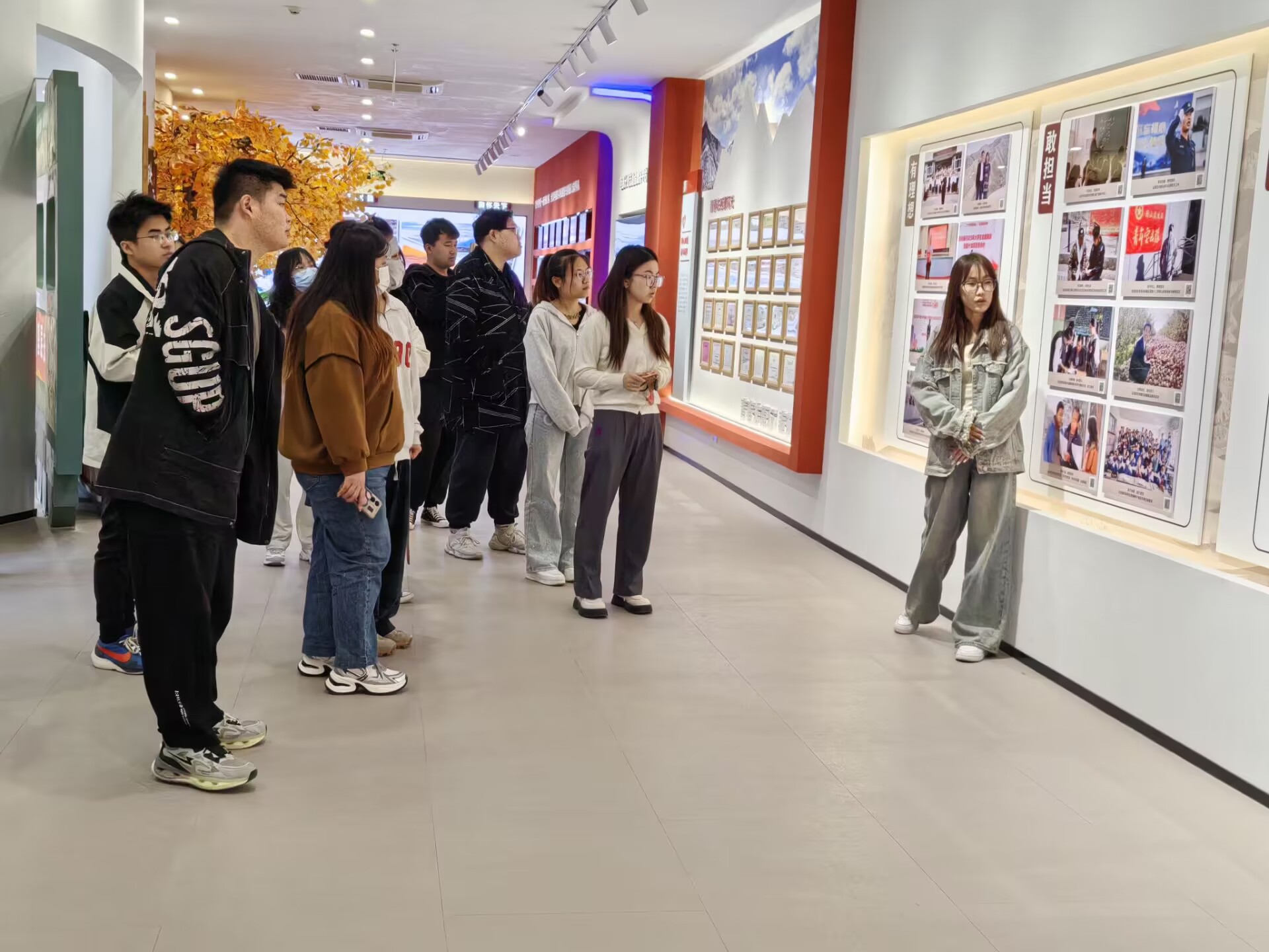 活动伊始,参观员工在讲解员的引领下有序进入西部计划教育展馆,逐一参观了“党旗召唤,青年航向”、“山河见证,青春足迹”、“初心如磐,奋斗筑梦”、“立德树人,托举理想”、“绚丽绽放,书写荣光”五个单元展区,深入领略了西部计划的“聊大现象”所蕴含的丰富内涵。参观过程中,讲解员详细地讲解了每一样展品背后的意义,使同学们对西部计划的发展历程有了更深刻的理解。他们在聆听了一批批有理想、敢担当的beat365亚洲体育官方网站志愿者奉献西部、扎根边疆,将志愿精神薪火相传的感人故事后,迫切希望自己也能像他们一样,参与到西部计划项目中贡献自己的力量,在西部地区展现青春活力,实现青春理想。