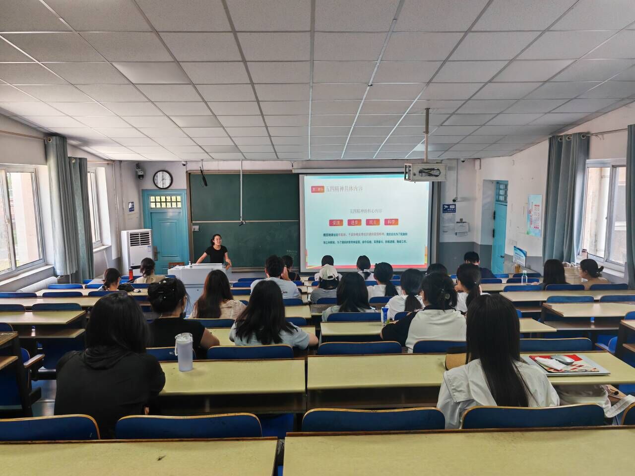 本次活动邀请到王俊玲作为主讲人,她围绕五四青年节的来历、五四精神具体内容、学习五四精神的意义、争做新时代有为青年四个方面的内容与同学们一同学习五四精神。同学们认真学习领会,纷纷表示要继承和发扬五四精神,坚定不移听党话、跟党走,勇担青年责任。