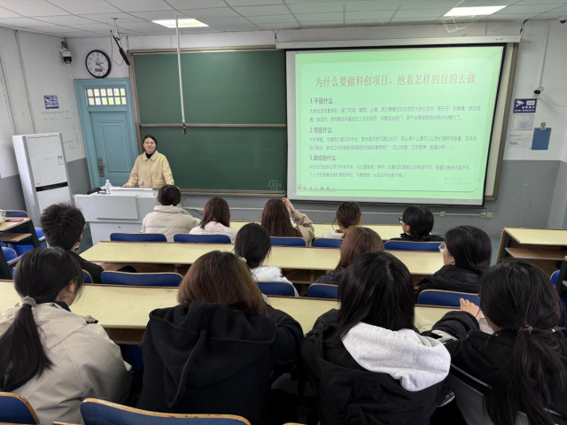 本次活动邀请王诗晴作为主讲人,围绕“科创与学风融合”展开分享。她建议同学们积极参与科创竞赛与项目实践,以此丰富老员工活,提前锻炼核心能力。她详细介绍了科创活动如何提升知识水平和实践技能,帮助大家将课堂所学转化为未来竞争中的“硬本领”。此外,她还结合往届优秀项目案例,鼓励同学们从现在做起,注重日常学习与实践的积累。
