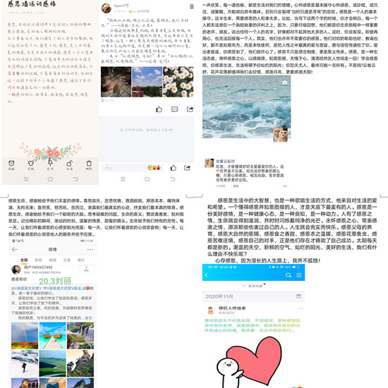 参与人员围绕着“从心开始·敲动你心”的主题,在微信朋友圈、QQ空间、微博等社交平台发布精心自制的关于感恩的美文或音频,并且将一张张带着温度的截图与一份份饱含着对国家、家人、朋友的感激之言发送到活动群中。“总有一份遇见,温暖了整个曾经”“感恩光阴所有的馈赠”“常怀感恩,胸怀坦荡”一字一句,映射出同学们内心的触动。