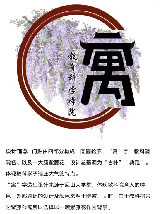 本次活动采用线上评议的方式。孙牧川设计的公寓门贴借鉴了尼山大学堂中“寓”的设计,门贴以紫藤花为背景与紫藤公寓的名称相呼应,设计内容积极健康,富有巧思。经综合评定,孙牧川获得一等奖,王佳慧、潘一诺获得二等奖,迟茹奕、安文慧、王梦瑶获得三等奖。