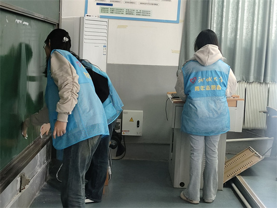 活动伊始,志愿者们组成12个小组,每组分别负责一个教室的清扫任务,他们手持清洁工具,开展了全面清扫。经过一番努力,教室桌椅摆放整齐有序,地面清洁无杂物。紧接着,第二批志愿者接过接力棒,开始对楼道进行细致的清洁工作,确保每一处都洁净无尘。此外,志愿者们还主动开展教科院及图书馆门前自行车排放的工作,将每一辆自行车摆放得井井有条。经过一下午的辛勤付出,每一位志愿者都深刻体会到了保洁人员的艰辛与不易,他们意识到,维护校园环境的整洁与美丽需要大家共同努力。