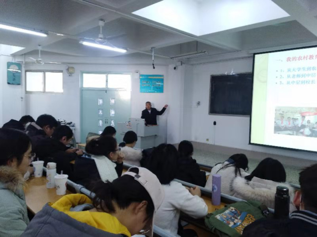 本次许老师的热情讲座,让同学们领略到了许老师的教育专业能力和崇高信念。许老师从他的农村教师升职记入手,深入浅出地给同学们讲解了“校本课程”、“书信教育”、“益智教育”等相关教育案例,赢得同学们的赞许和敬佩。