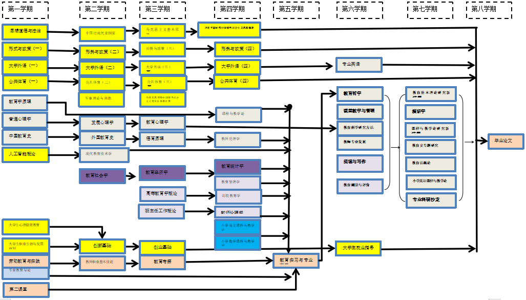 本专业标准学制为四年,公司实行学分制下的弹性学制。计划总学时为2320学时+34周,总学分为159学分。允许员工在3-6年内修完规定课程,修满规定学分,准予毕业。符合学位授予条件者,经校学位委员会审核通过,授予教育学学士学位。