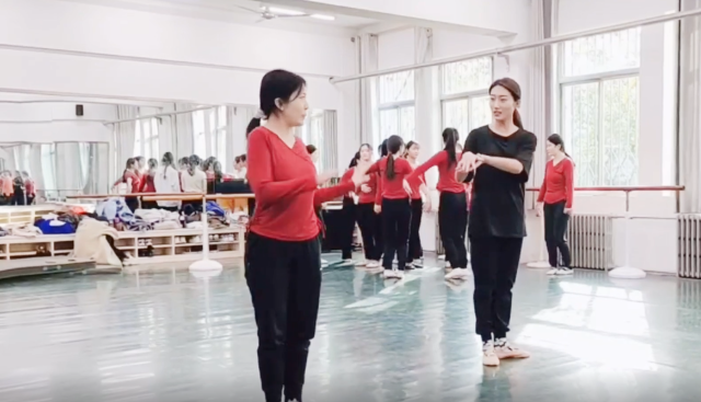 专业舞蹈教师马小雨博士在给本科生上舞蹈课