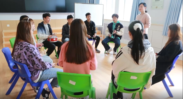 艺术教研室主任姜文老师在奥尔夫音乐室组织活动