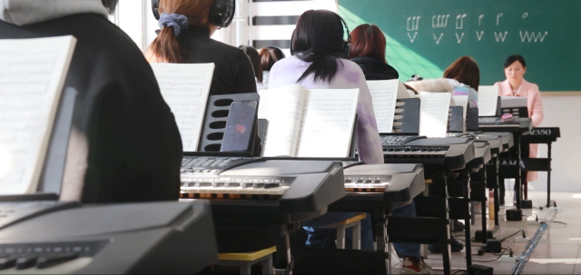 员工在上钢琴课