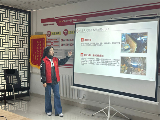 2023级4班团支部于11月23日来到柳园街道新时代社区开展消防安全知识宣讲,志愿者们在辖区沿街商铺发放宣传彩页,从警示篇、防火篇、灭火篇、逃生篇四个部分向到场的群众讲解火灾预防措施、真实火灾案例、如何使用消防器具以及正确的逃生方法等安全知识。提高了居民的消防安全意识,帮助社区营造了良好的消防安全环境。
